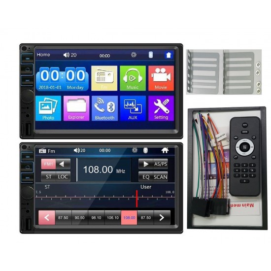 7-inch car cassette player, Bluetooth, flash memory radio, Aux port, and rear camera Bluetooth, flash, radio, remote Touch. Plays videos a..